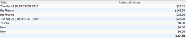 That last one threw you, didn’t it? You’re probably used to using the slash character (/) for division. However, in XSL and XPath, the slash means something else entirely. The slash is how you sort of “parse” the nodeset, as you can see in my use of the full XPath for Potential Value above: /dsQueryResponse/Rows/Row/@Potential_x0020_Value