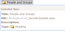 See the problem? Well, none of us did at first, either. Finally we realized that the URL SharePoint was trying to load wasn’t even valid. It should have been /rx/sy/cx/la1, not /rx/cambridge/la1. At some point in the past, the link for People and Groups had gone south on us. In fact, *most* of the Quick Launch headers were wrong, pointing to this other site URL which didn’t exist.