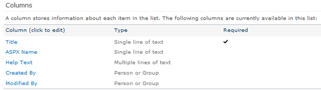 Rather than using a publishing model, we decided to use a list to hold the help content. I’m a *huge* fan of list-based content over the publishing model for most internal systems. It gives you the possibility of reusing the same content in multiple ways using different delivery channels far more easily. There are those who think otherwise, but there you go. It always depends.
