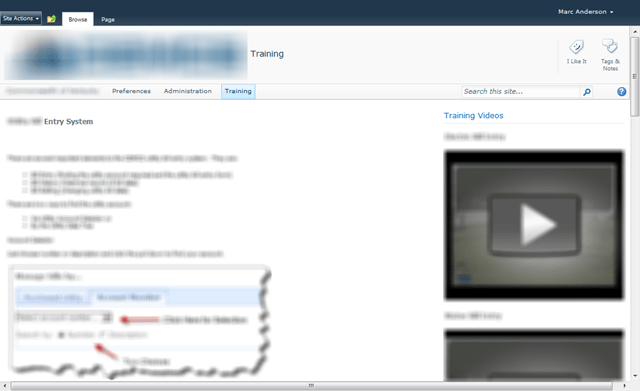 When the user clicked on the icon, a new browser window would open up with a help page like the one below. I think we called it something like PageHelp.aspx, and it lived in the Training site. Sorry about the blurred out content, but I think you can see the overall structure of the page.